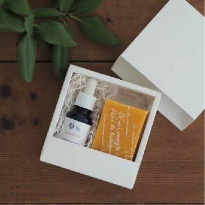 そのオイルを使い、さらに 国産の無農薬栽培カレンデュラを贅沢に抽出したカレンデュラオイルを使い、やさしく爽やかな精油の香りです。